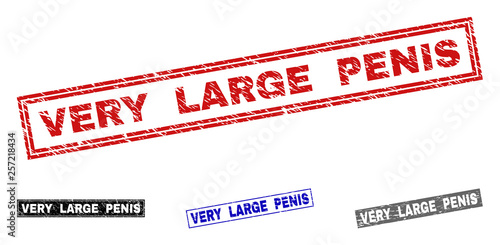 Grunge VERY LARGE PENIS rectangle stamp seals isolated on a white background. Rectangular seals with grunge texture in red, blue, black and gray colors.
