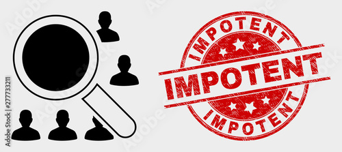 Vector search users pictogram and Impotent seal stamp. Red rounded grunge seal stamp with Impotent text. Vector composition for search users in flat style. Black isolated search users symbol.