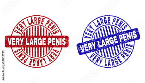 Grunge VERY LARGE PENIS round stamp seals isolated on a white background. Round seals with distress texture in red and blue colors.