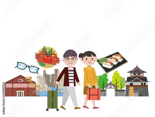 夏旅 旅行に行く人々 帰省 観光客 夏休み イラスト