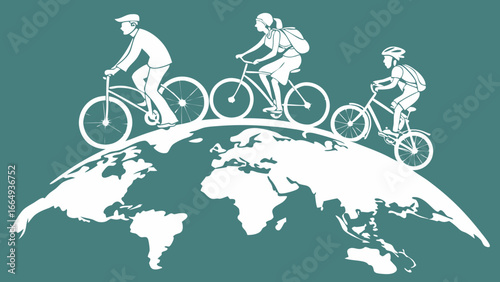 旅行、お出かけ、ハイキング、サイクリングをする人々のアイソメトリックイラスト