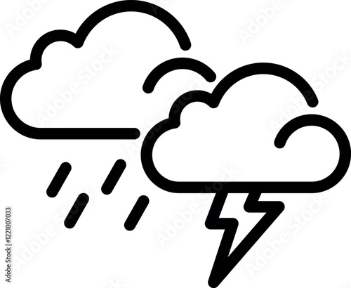 Extreme Weather Icons. Black And White Vector Icons. Rain Cloud And Danger Sign. Storm Warning. Ecological Problem. Climate Change Concept
