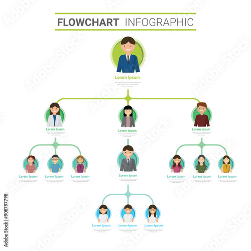 Corporate organization chart template with business people icons. Vector modern infographics and simple with profile illustration.Corporate hierarchy and human model connection.