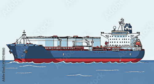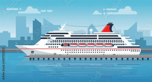 Cruise ship loading cargo containers with a crane for global trade and shipping logistics, creating a modern ocean transport network illustration