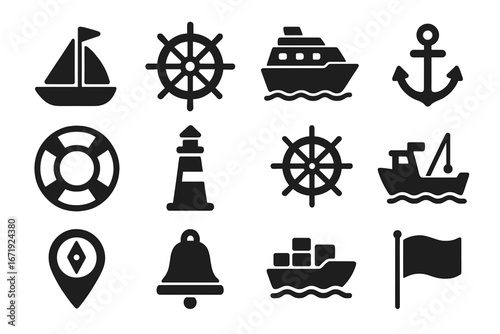 Simple black and white boat icons, perfect for website designs and marine industry branding.