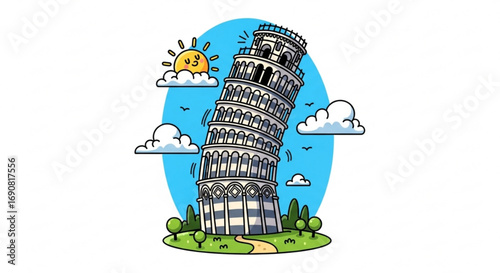Breathtaking Landscape of a Quiet Village Overlooking the Sea, Rendered in Detailed Vector Art
