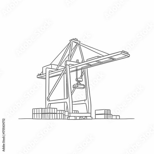 Efficient container loading with vibrant harbor crane, symbolizing global trade and shipping logistics, a modern illustration of maritime commerce