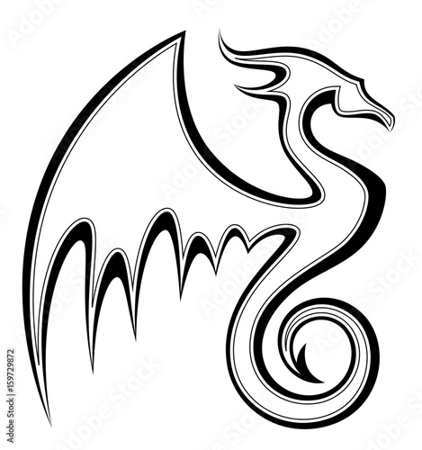 Seahorse is green with a big belly, encircled by a thin black outline. Vector illustration