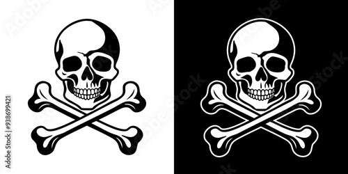 A scary human skull and crossbones illustration, a symbol of death and danger, often seen in pirate or horror themes