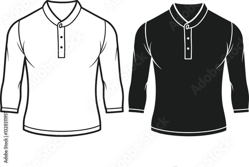 Henley shirt long sleeve and short sleeve, Technical Drawing Flat Drawing Template.