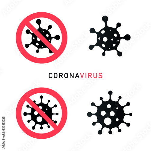 Coronavirus Bacteria Cell logo, 2019-nCoV, Covid-2019, Covid-19 Novel Coronavirus Bacteria. No Infection and Stop syndrome Coronavirus Concepts. Dangerous Coronavirus Cell. Isolated Vector Icon