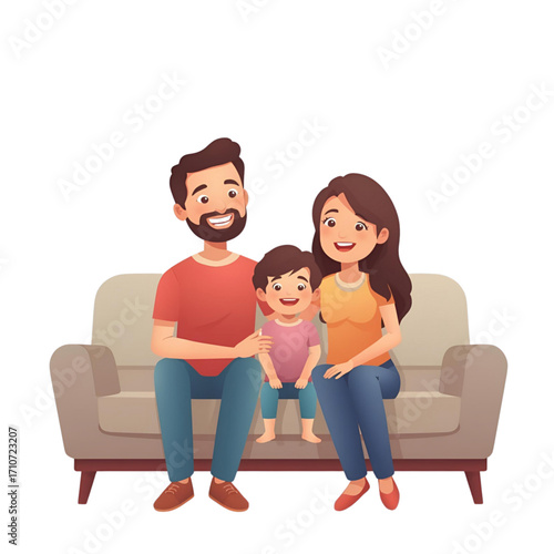 Family smiling together in black and white illustration - Concept of icon on a transparent background for Father's Day