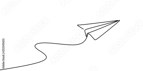Paper plane continuous one line drawing. Concept of business messages and ideas. Minimalistic trend vector illustraation.