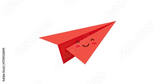red paper plane fly on the sky while flying above a cloud. creative idea. illustration cartoon vector