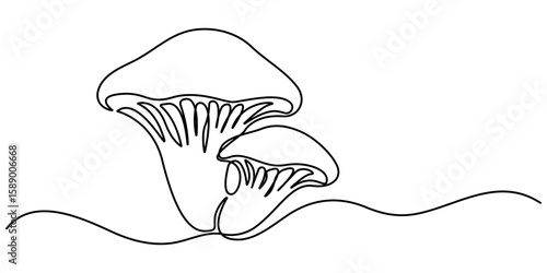 Vintage monochrome mushrooms in various sizes growing among grass, showing detailed caps and stems, suitable for culinary packaging, herbal medicine labeling, or botanical graphic design.
