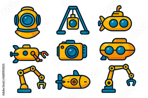 Navigation yacht icons control autonomous patrol boat icon vector cruiser electric smart