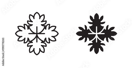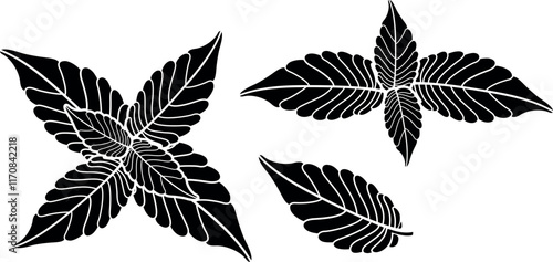 Symmetrical mint leaf star icon in black and white. Minimalist herbal plant graphic illustration.