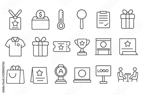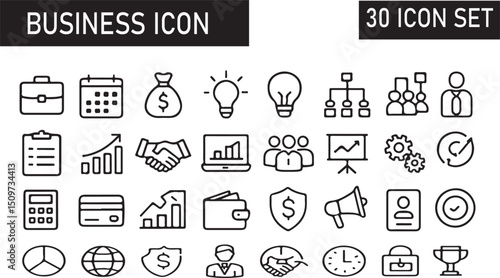 Business and office icon set. linear collection of work, meeting, and presentation symbols