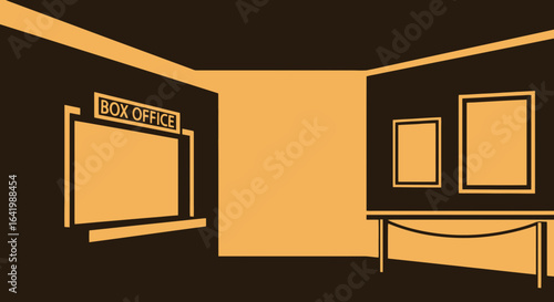 Colorful ticket booth with curtains and blank sign, perfect for events, movies, or concerts