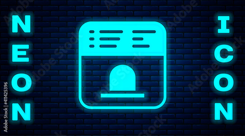 Glowing neon Ticket office to buy tickets for train or plane icon isolated on brick wall background. Buying tickets. Ticket service. Vector.