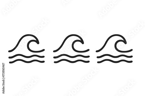 Sea waves line art collection, ocean wave icon set, simple water waves pattern