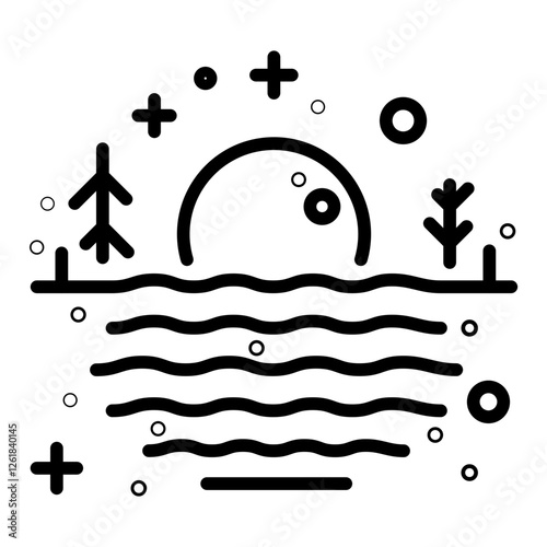 Shape flat icons broad curving river tidal icon platform channels vector delta