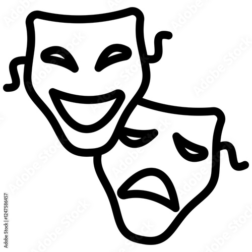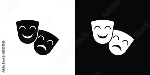 comedy and tragedy masks icon, theater masks, drama masks, theatrical mask icon, Greek theater masks, performance icon, stage masks, acting masks, drama symbol, comedy mask, tragedy mask, theater icon