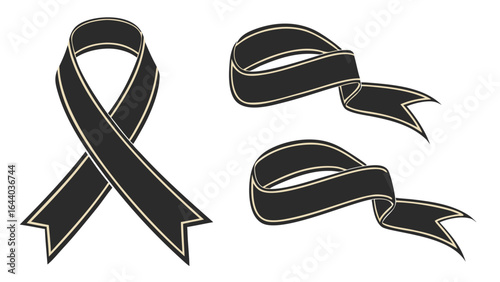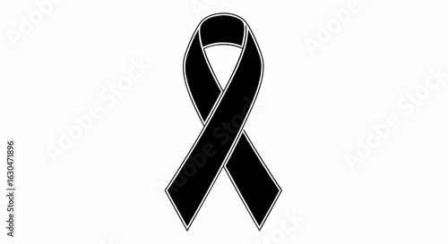 Monochrome Ribbon Symbol: A Minimalist Illustration of Loss, Grief, and Mourning Represented as a Symbol of Somber Remembrance
