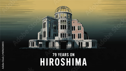 Digital illustration of the Hiroshima Peace Memorial, commemorating seventy-nine years of reflection and the enduring hope for global peace