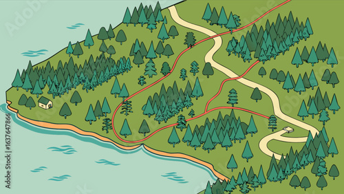 Isometric nature elements set with forests, rivers, and mountains for game design