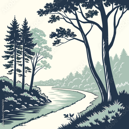 Mountain River Landscape Illustration Vector