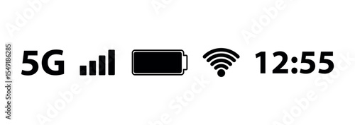 Mobile phone signal, wi-fi, battery icon. Status bar symbol modern, simple, vector, icon for website design, mobile app.