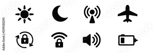 Smartphone notification bar wifi signal battery user interface icons. Black white icon set of phone ui vector illustration