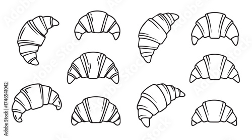 Classic Croissant Sticker Set Vector: French Pastry Icons in Various Styles in Flat Design for Bakery, Breakfast, and Food Themes