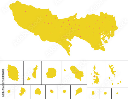 イラスト素材:日本地図 東京都ベクターイラストマップ