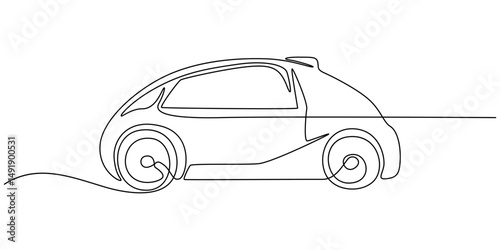 Continuous one line drawing of car vector icon. One line Car icon vector background, Abstract small car in continuous line art drawing style. Minimalist black linear sketch vector illustration.