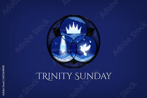 Trinity Sunday Vector Illustration - Christian Symbols, Cross, Dove, Divine Light Concept