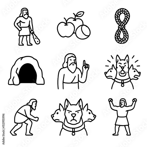 Award and Recognition Line Icon Design Featuring Trophies, Medals, Ribbons, Badges, Star Ratings, Winning Symbols, Achievement Crowns, Laurels, Prize Certificates, and Celebration of Success Icons