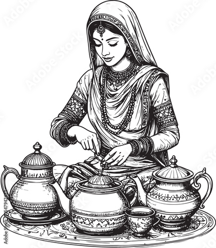 Masala Chai Ingredients and Indian Tea Illustration