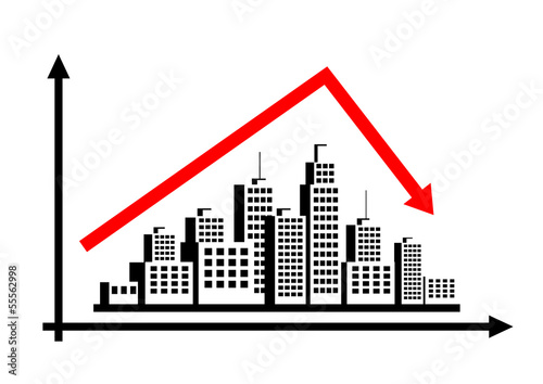 Housing Crisis, Low prices. Graph, Residential Building, Built Structure, Chart, Home Finances, Recession, Arrow, Real estate. The housing market is falling.