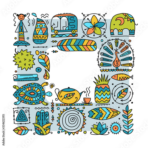 Set of doodle style vector illustrations. Hand drawn icons for design or decor. Cartoon house, man, cloud, bus and sun. Prints for kids and children. Black outdrawn icons.
