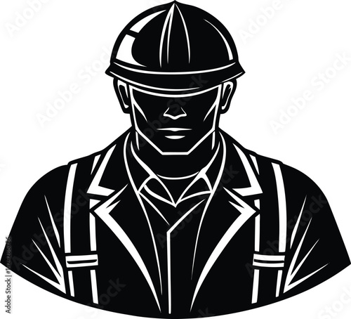 Black Silhouette Icon of a Construction Worker with Hard Hat and Suspenders person