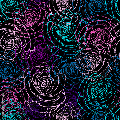 Wood grain black texture. Seamless wooden pattern. Abstract line background. Tree fiber vector illustration