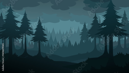 A vector illustration depicts a dense forest of evergreen trees against a clear sky, creating a serene and natural scene perfect for backgrounds and designs.