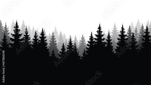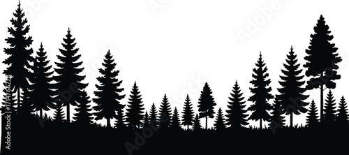 A dense silhouette of evergreen trees creates a natural forest landscape seamlessly