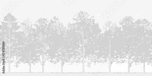 Monochromatic abstract forest with tall trees and dense foliage in a minimalist style