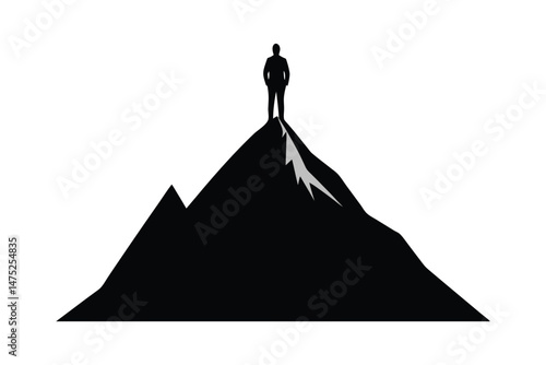 Silhouette of a Person Standing Alone on a Hill Overlooking the Ocean with a Feeling of Loneliness