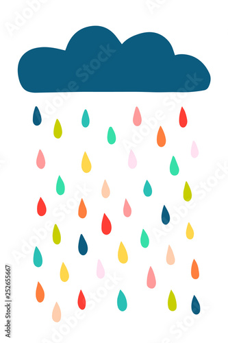 Sketch of a dark rain cloud pouring heavy rain droplets. Vector illustration