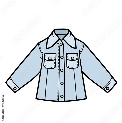 Shirt jacket. Zip down the front. Relaxed Fit. Vector illustration. Flat technical drawing. Mockup template.