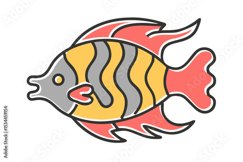 Whimsical underwater garden with vibrant coral reefs, exotic fish, and hidden underwater caves. Vector flat minimalistic isolated illustration.